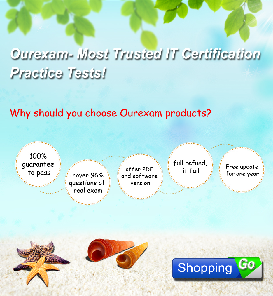 Ourexam Information Co.,Ltd was found in 2001. It is one of the most professional IT Certification Providers in the world. Since our operations started, we have never seen people report failure in the exam after using our high quality products. With these feedbacks we can assure you of the benefits that you will get from our products and the high probability of clearing the exam.
