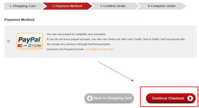 6. After confirming the product you need in the shopping cart, please choose the payment method and then click the button "Continue Checkout".